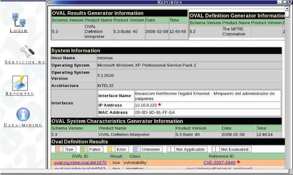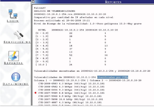 在执行一个扫描,扫描结果显示在喜欢的环境报告。用户应该点击“报告”。分析报告和图形都是直接基于CVE条目。数据挖掘报告也有CVE条目作为参考。