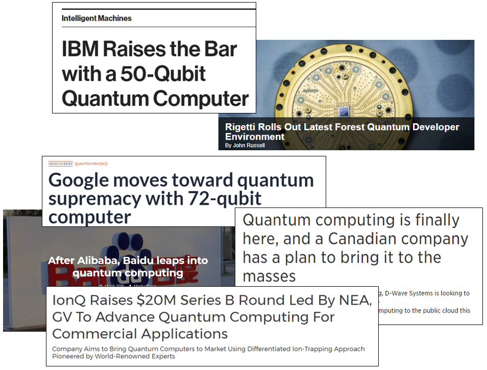 在2010年代early-to-mid,研究人员开始发现成功,符合成本效益的方式,控制和维护量子系统足够长的时间执行有用的计算。了他们的成功和这些强大的量子算法的魅力,商业公司开始投入数十亿美元的量子计算机的研究和发展: