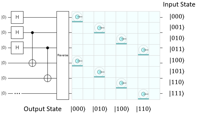 他们现在在所有可能的输入和输出的叠加组合,所以无论输入寄存器作为衡量,总是会输出测量结果操作的输入值。