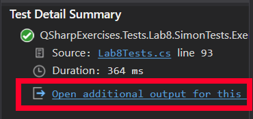 一旦运行单元测试,点击打开额外输出……链接底部的测试结果: