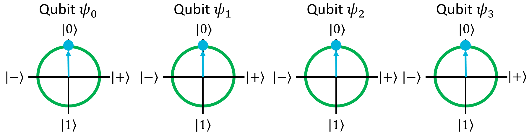 让我们尝试把CNOT叠加,看看它的寄存器。像往常一样,让我们开始吧\ \(刃{0000}\)状态: